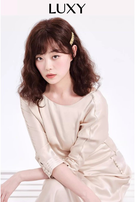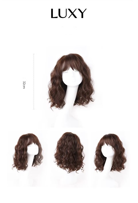 Tóc giả nữ nguyên đầu LUXY dài đến xương quai xanh nâu hạt dẻ có mái bằng tóc thât siêu da đầu