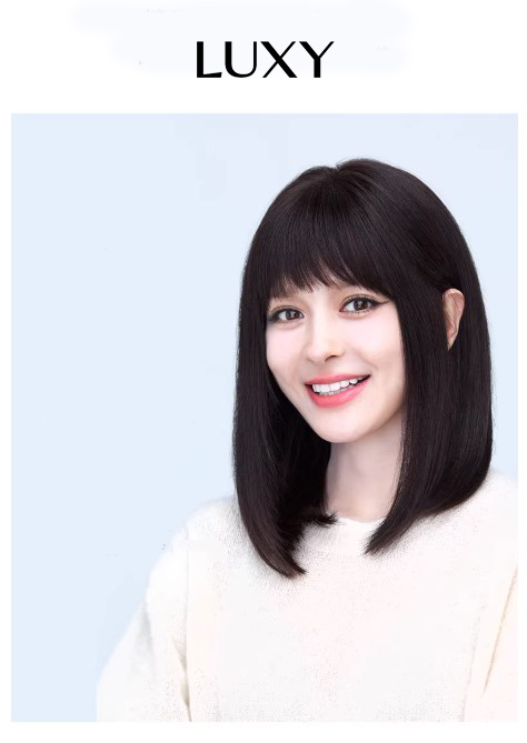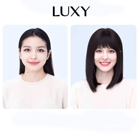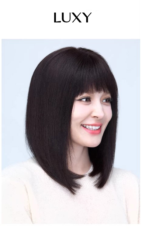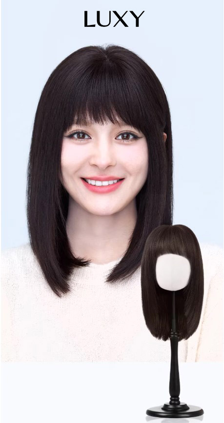 Tóc giả nữ LUXY dài vừa qua vai có mái móc tay thủ công có da đầu bằng tóc thật