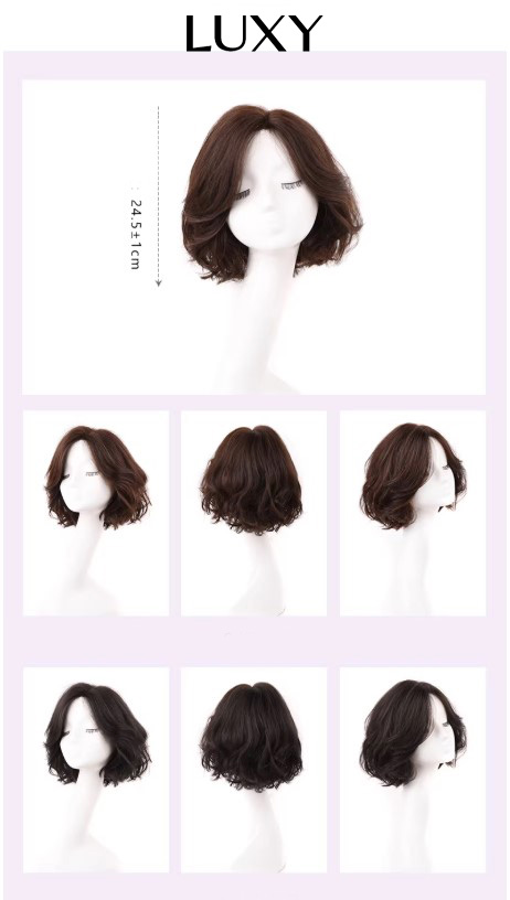 Tóc giả nữ ngắn LUXY xoăn lọn trung niên bồng bềnh trẻ trung bằng tóc thật