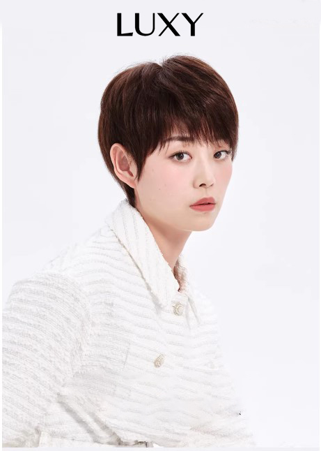 Tóc giả tém LUXY dáng thẳng mái xéo trẻ trung bằng tóc thật có da đầu