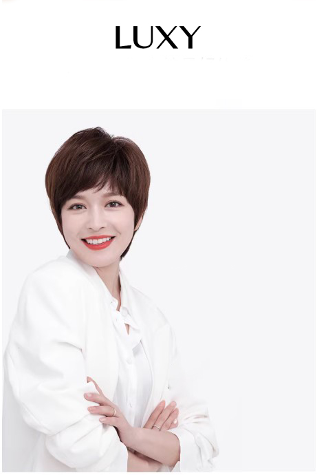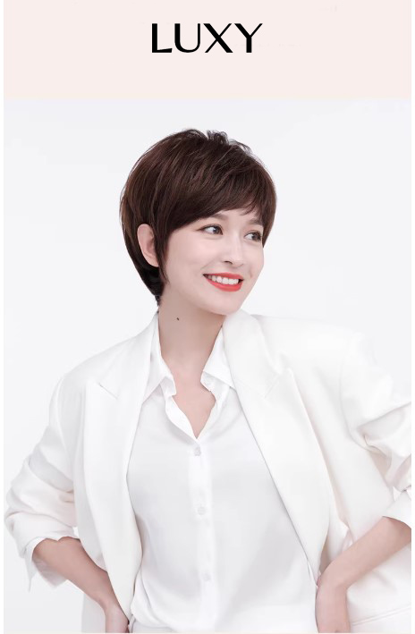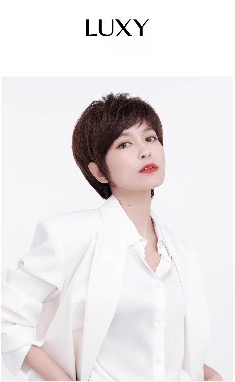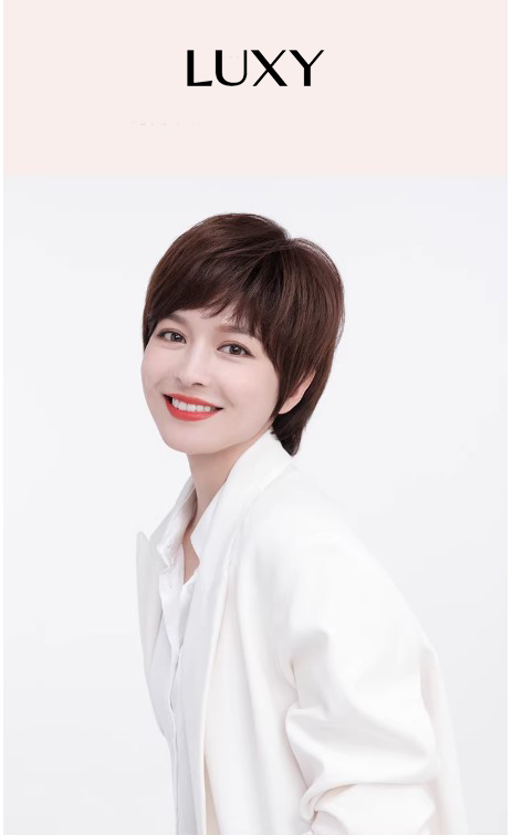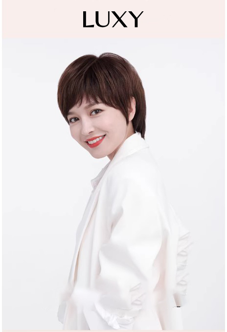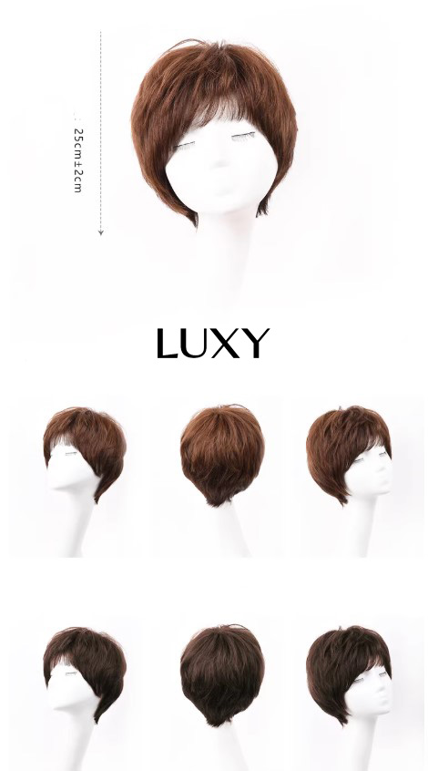 Tóc giả tém ngắn LUXY mái xéo nâu sẫu thời trang bằng tóc thật