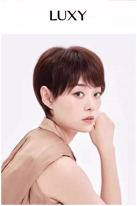 Tóc giả tém ngắn nữ LUXY cho tuổi trung niên bằng tóc thật